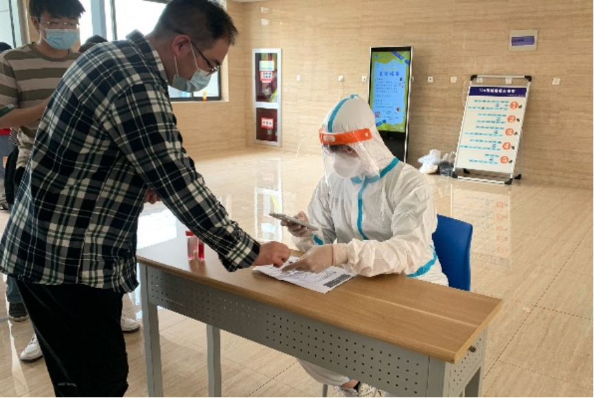 作为“大白”的一员,李金澄在经历了短暂培训之后,便参与到全员核酸信息收集工作中。“我们用提前下载好的镇江采集手机app扫描同学们的身份证,或者镇合意中的核酸采样码收集信息。”信息采集一坐就是一上午,两个多小时的连续重复动作,平均每人500多名学生信息的采集,使得每一位“大白”志愿者都倍感疲累。