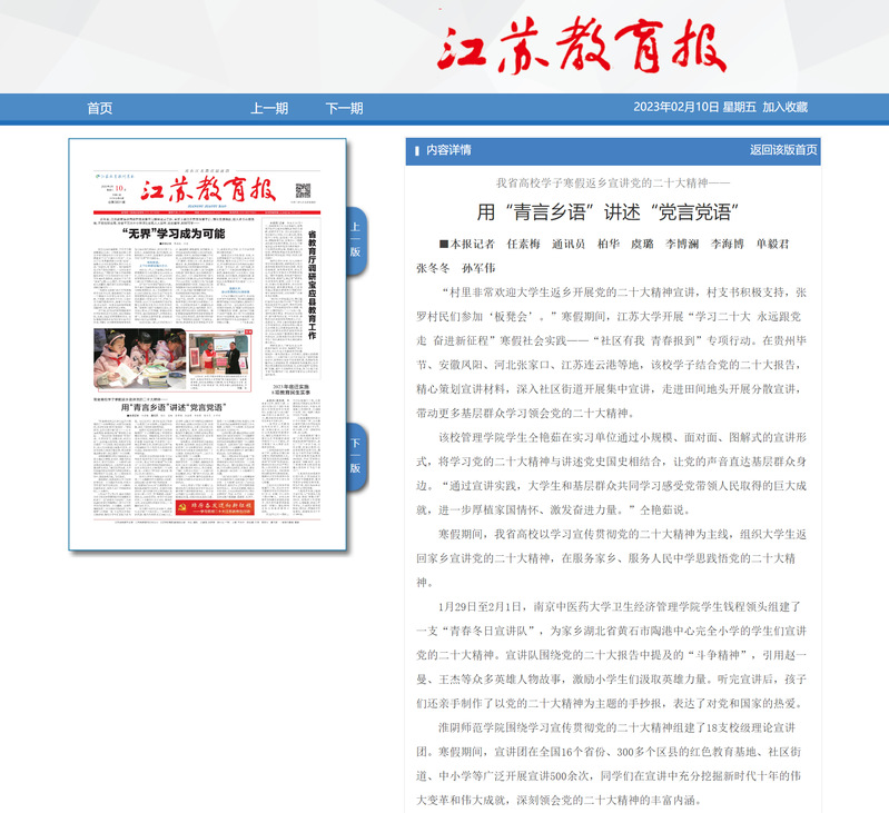 江苏教育报2023年2月10日头版http://epaper.jsenews.com/Article/index/aid/7437099.html