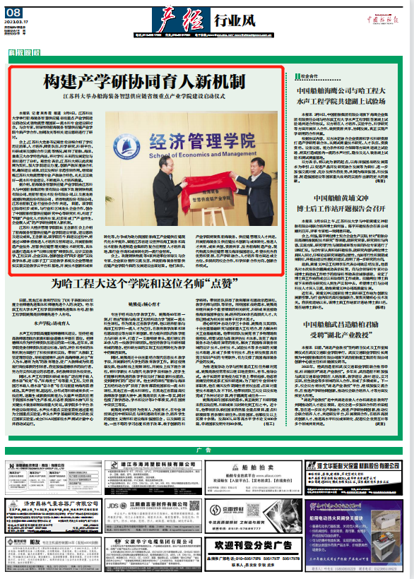 据介绍,船海装备智慧供应链产业学院由江苏乐玩手机版与中国船舶集团物资有限公司旗下玖隆钢铁物流有限公司、昆船智能技术股份有限公司,以及惠龙易通国际物流股份有限公司、诺得物流股份有限公司、江苏省船舶工业行业协会合作共建。 目前,该学院已取得初步成果,与行业和区域龙头企业合作,创办了中国船舶智慧供应链研究中心等研究机构,构建了“四新”产业化人才培养方案,初步形成了“产业伴生、企业嵌入式”的产学研协同育人新机制。