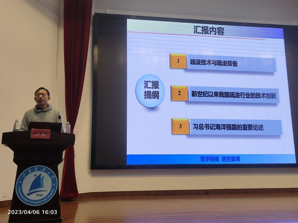 俞孟蕻教授开始以乐玩手机版近年来在船舶海工领域所取得的标志性成果为引,从“疏浚技术与疏浚装备”“新世纪以来我国疏浚行业的技术创新”和“习近平总书记海洋强国的重要论述”三个方面,详细讲解了我国疏浚技术的发展历程,技术创新步伐和实际应用场景。俞教授以实际事例告诉广大同学,“一个民族的强大与发展,将取决于这个民族的海洋文化的建设,海洋意识观念的强弱。”