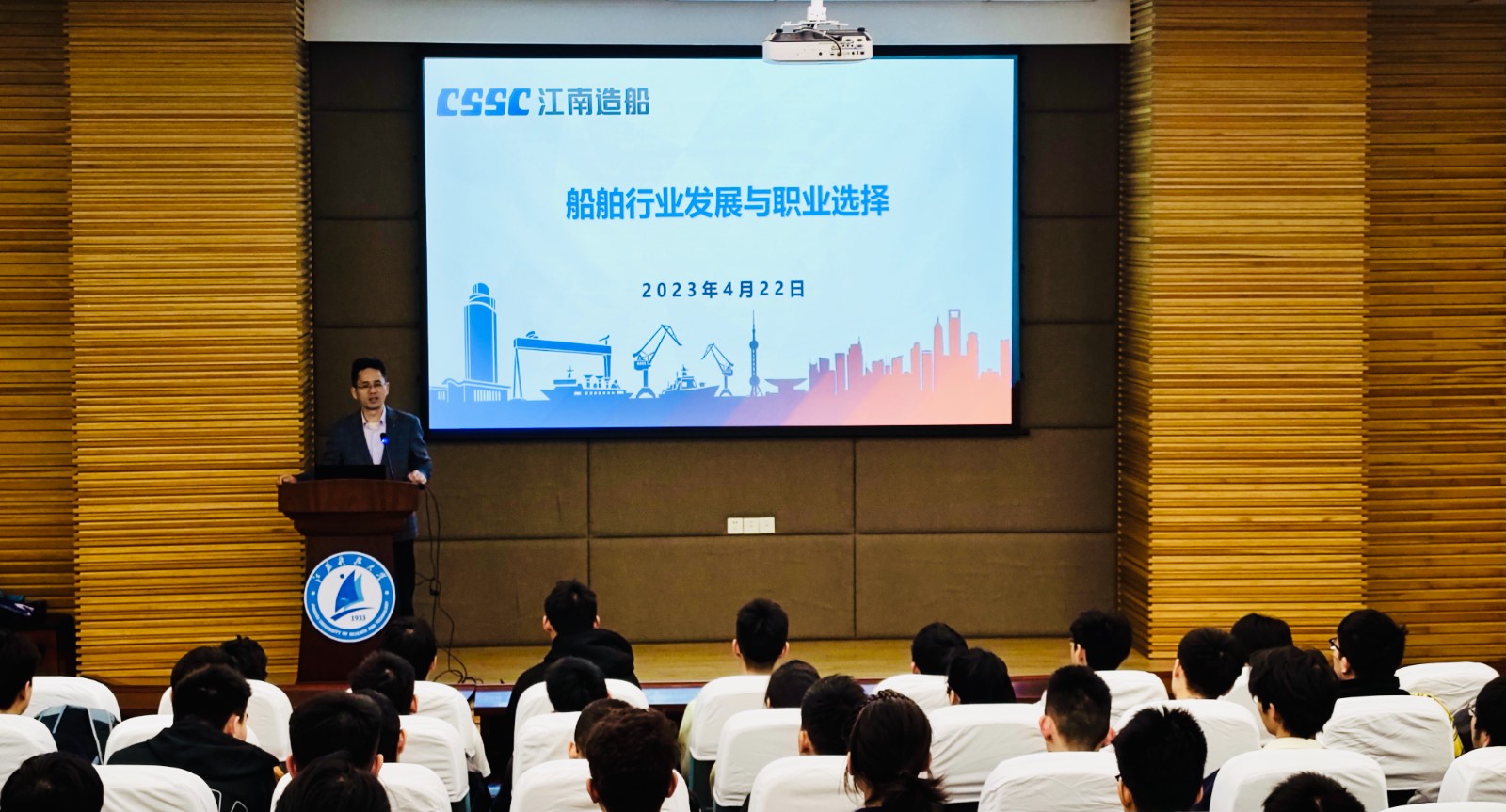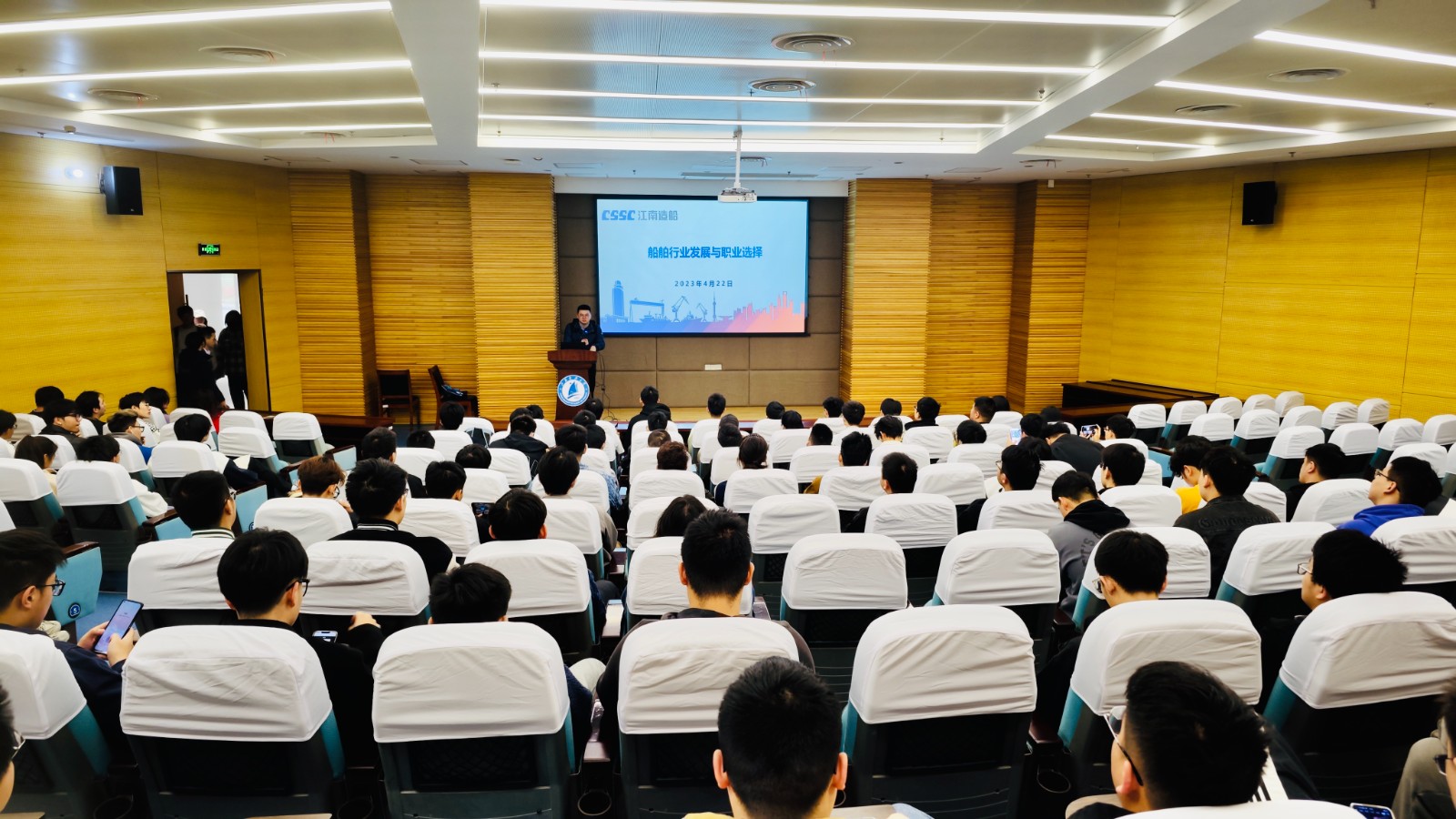 为深入贯彻落实党的二十大精神,围绕中央经济工作会议提出的“把促进青年特别是高校毕业生就业工作摆在更加突出的位置”的重要要求,着力引导大学生立足实际、找准定位,树立理性、平实的择业观、就业观,4月22日,在中国人民海军纪念日即将到来之际,江南造船(集团)有限公司应邀入校开展就业引航宣讲活动。本次活动由江南造船(集团)有限公司、学校学生工作处主办,江南造船(集团)人力资源部、校船舶与海洋工程学院承办。