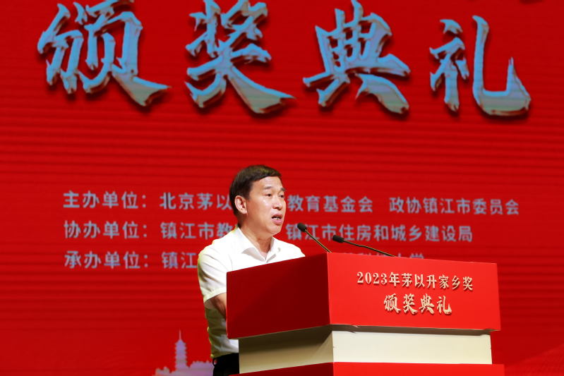 市政协副主席杜秀芹宣读《2020年度“茅以升家乡教育奖”表彰决定》和《2021年度“茅以升家乡土木工程奖”表彰决定》。北京茅以升科技教育基金会理事长茅玉麟、镇江市政府副市长黄春年、镇江市政协副主席杜秀芹、北京茅以升科技教育基金会秘书长刘晓光为获奖者颁奖。获奖教师代表严鹏、学生代表陈晨、工程人员代表杨恒网代表获奖者发表获奖感言。