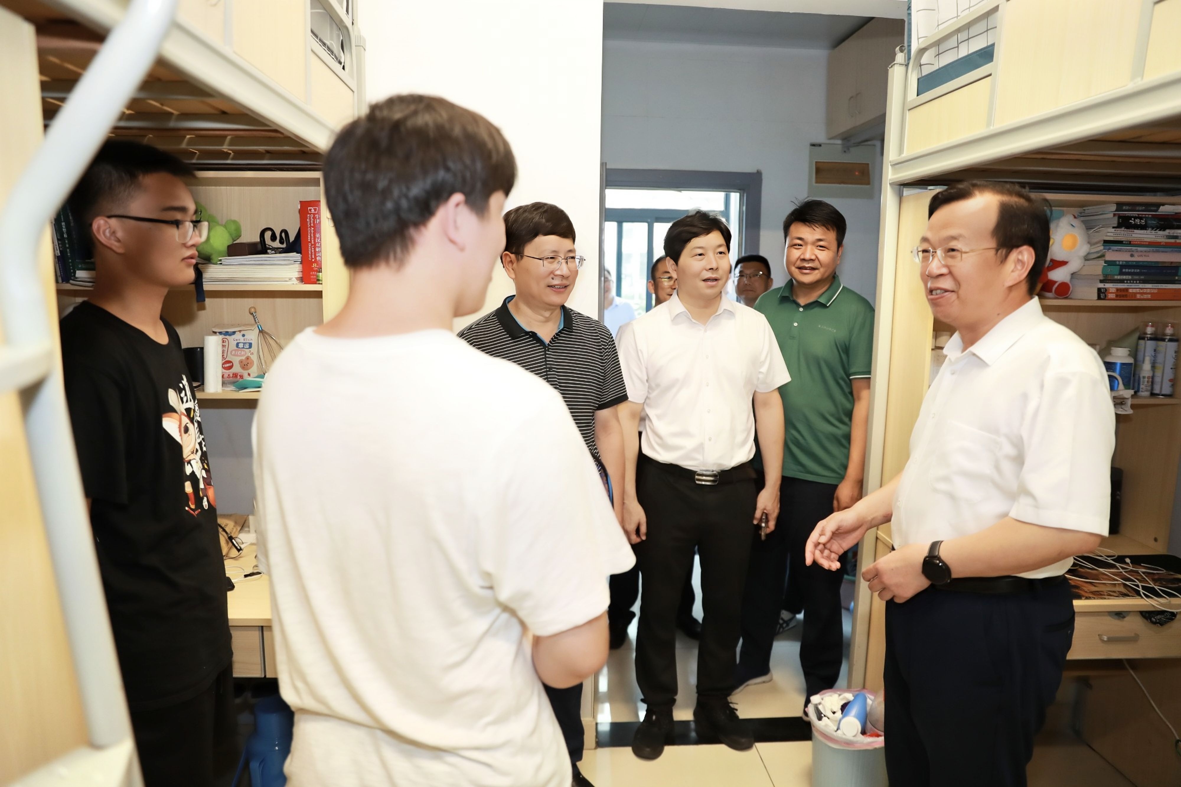 “你们暑期留校有什么任务?假期食堂饮食怎么样?品质有没有下降?寝室维修有没有保障?”……在10号学生宿舍组团,周南平校长亲切地与学生交谈,希望留校学生之间相互关心,多安排一些集体活动,要注意安全,同时也向留校学生家长转达学校的关心,希望家长们放心。