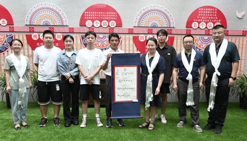 平措对乐玩手机版给予的关心和支持表示感谢,为参加活动的老师们献上洁白的哈达,给积极参加支教的蒋薇薇老师赠送藏文书法作品“潜心支教 大爱无疆”。