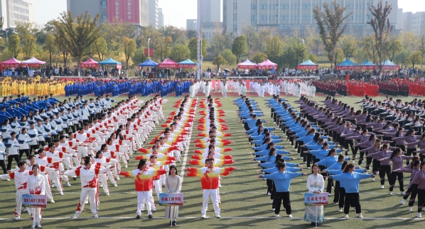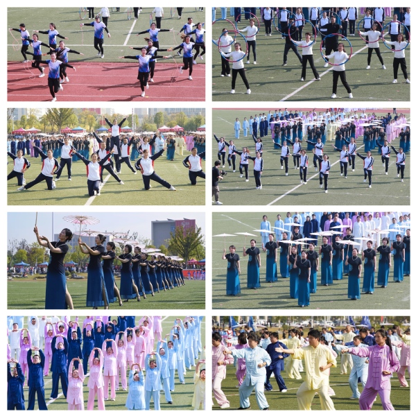 由工会组织,来自全校各单位的300余名教职工带来了多元运动风采展示。花样跳绳“绳彩飞扬”、呼啦圈快乐转起来、毽子操毽舞青春、旗袍秀清雅·秋韵以及自编霍元甲版八段锦,均是各基层工会和教职工协会选送的“一会一品”特色运动品牌项目,动静之间,皆成风景,彰显了我校教师快乐工作、健康生活的文化氛围。