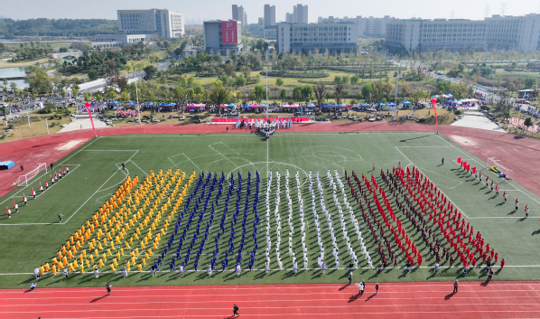 团体操表演以“九秩芳华、筑梦乐玩手机版”为主题,凝聚了主创教师团队及600余名学生的近2个月辛勤付出,青春洋溢、场面震撼。