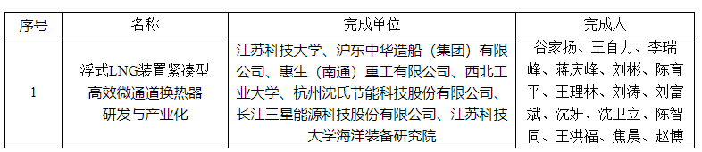 “浮式LNG装置紧凑型高效微通道换热器研发与产业化”成果针对浮式LNG气化外输需求,在国家重点研发计划、江苏省工信厅产业转型升级、江苏省工信厅成果转化、国家自然科学基金等项目支持下,开展了微细流道造型及芯体数字化设计、复杂大尺寸形性调控技术、工业化性能测试方法等方面的技术研究,突破了超临界强化传热流道的微米级造型理论,激光选区熔化增材制造换热芯体的形性控制,三介质能量梯级利用的多级变频联动自适应稳定控制等多项关键技术,推动研制成果整体达到国际先进水平,其中,超临界强化传热流道的微米级造型技术处于国际领先水平。
