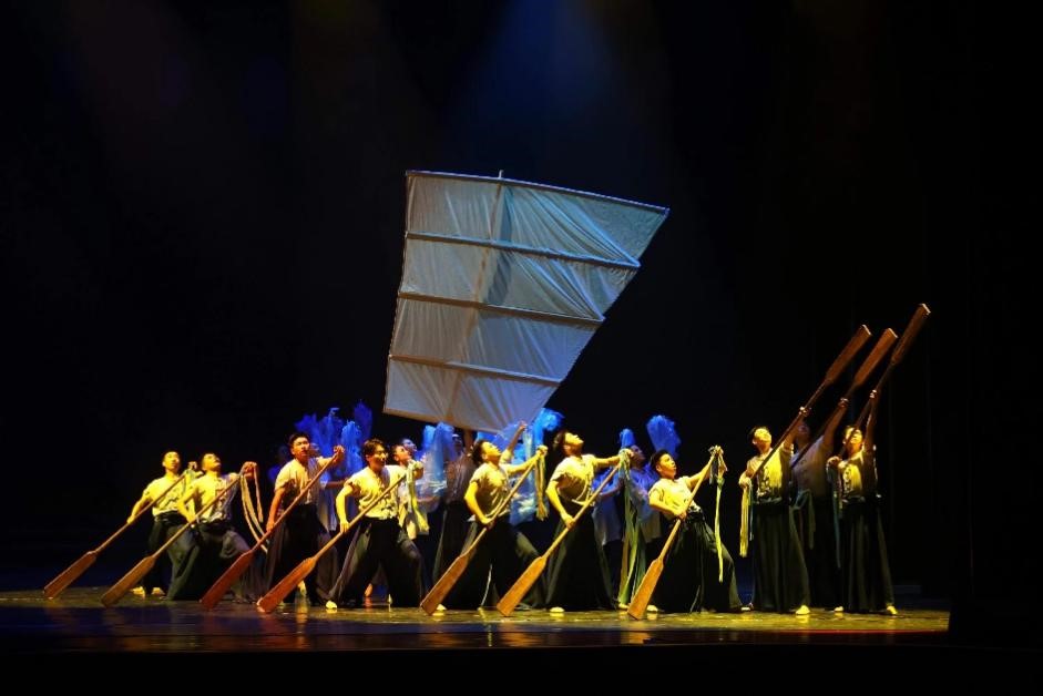 江海扬帆辟丝路,百舸争流正当时!本次原创作品结合我校“船舶、海洋、蚕桑”特色优势,采用男女群舞的舞蹈样式,以现当代舞蹈语汇综合展现船魂精神,生动鲜活的表达劳动人民奋楫扬帆,勇往直前的奋斗与拼搏!作品运用时空交错的结构方式构建角色间时聚时离的情感联接,以劳作、送别塑造女子的温暖、坚韧;以奋楫、扬帆塑形男子的奋勇、无畏!