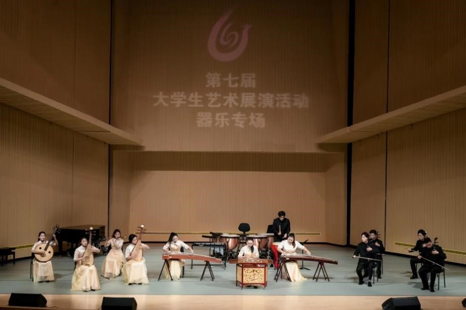 全国大学生艺术展演竞赛由教育部主办,每3年举办一次,被誉为中国大学生艺术的“奥林匹克”盛会,是全国目前规格最高、规模最大、影响最广的大学生艺术盛会,是集中展示高校美育教育成果的重要活动。第七届展演竞赛的主题是“厚植家国情怀,涵养进取品格”,要求展演活动的项目和内容要紧紧围绕主题,展现当代大学生与时代同向,与祖国同行,胸怀家国,奋力筑梦的价值追求;展现当代大学生有理想、敢担当、能吃苦、肯奋斗的精神状态;展现当代大学生心灵美、形象美、行为美、语言美的崇高审美追求和高尚人格修养。