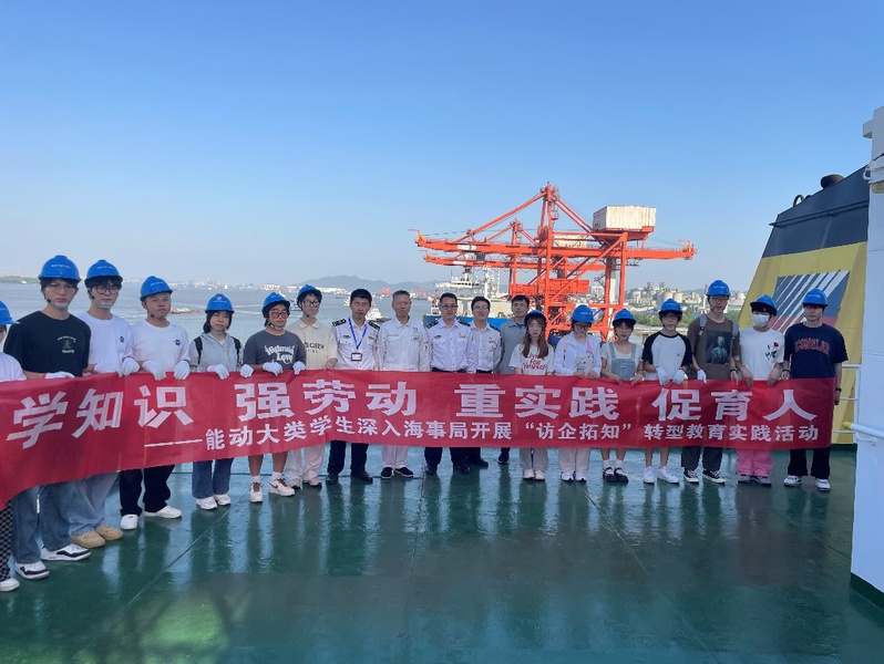 为弘扬“江海襟怀、同舟共济、扬帆致远”的船魂精神,加强实践教学,促进政产学研合作,5月14日,能动学院与共建单位镇江海事局联合开展“学知识、强劳动、重实践、促育人”访企拓知主题教育活动,能动大类专业学生和入党积极分子同学在海事局同志和船员们的带领下,登上四万吨级运煤船“明州55”号,开启了一段探索船舶的实践之旅。
