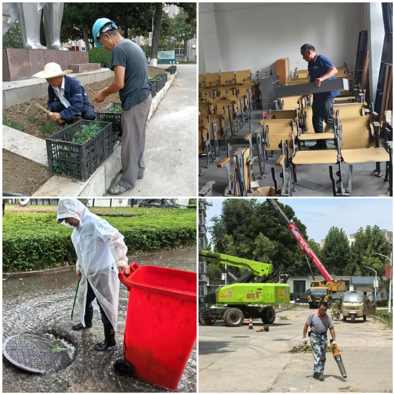 在酷热的天气里,后勤干部职工们各司其职,忙碌而有序,为约7000名留校师生的学习、生活和科研保驾护航。饮服中心开放5个餐厅,员工们在高温的厨房里挥汗如雨,精心准备每一份餐食,确保留校师生的饮食安全与营养健康。公寓中心不仅负责14个开放组团日常的值班与清洁工作,还提前为7129名新生入住做好充分的准备,从打扫房间到安排床位,每一项工作都细致入微。物业中心在做好所有开放办公楼、教学楼、图书馆等场所的物业服务的基础上,还完成大学生劳动基地日常管护、桑树修剪,并为学校各类比赛活动、会务等提供服务保障近70场次,同时加强防汛防台工作,确保校园环境的整洁与安全;校园管理科协调合作单位完成了草花补植、草坪铺设、抗旱浇水、病虫害防治、草坪除草、色块修剪等工作。