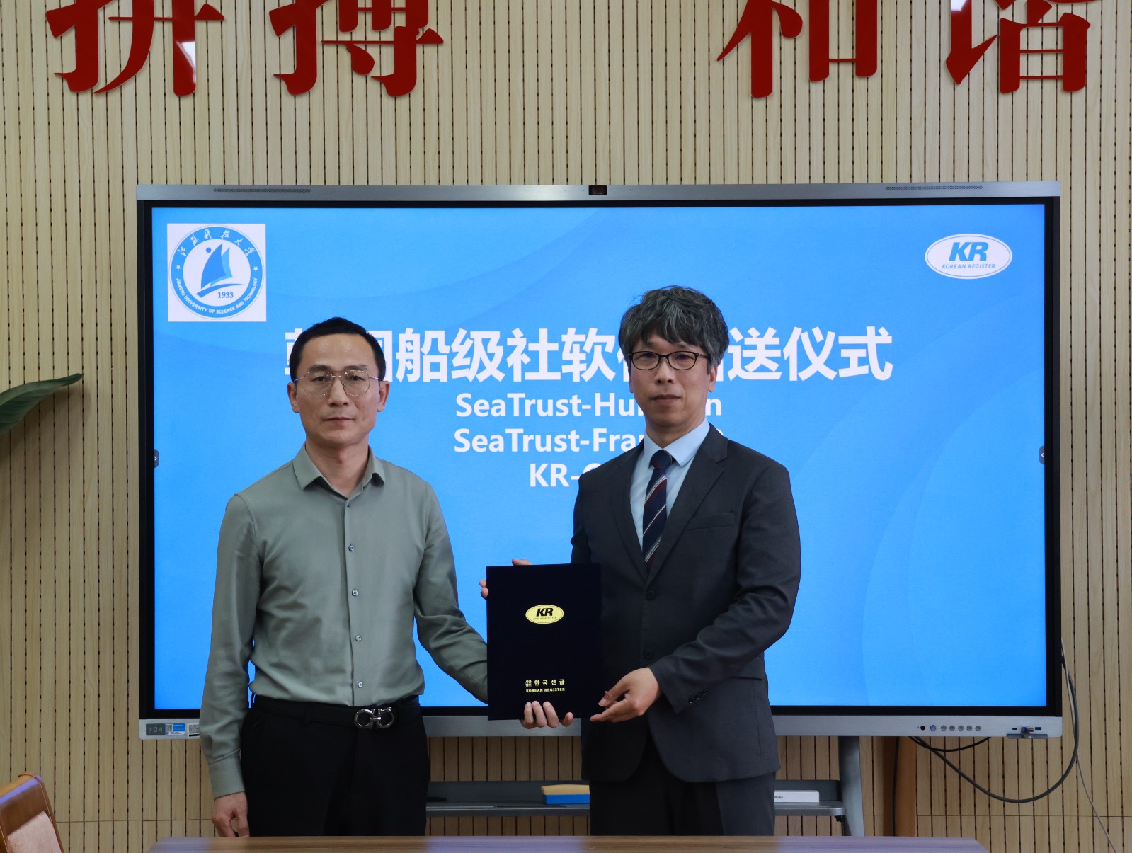 随后,韩国船级社赠予学院自主研发分析软件Sea Trust-HullScan、Sea Trust-Frame3、KR-CON。