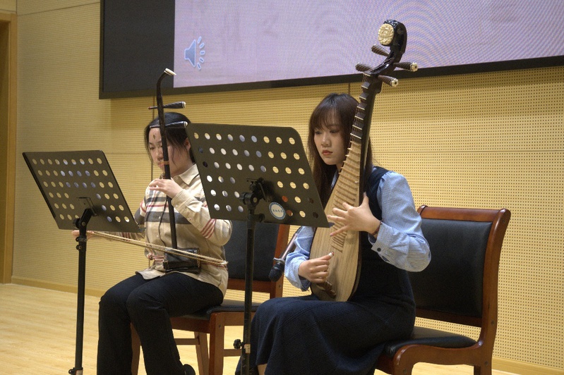 随性乐队带来《爱人错过》《闹海》《回留》,表演风格迥异,几首歌曲或激情澎湃,或深沉婉转,每一个音符都仿佛在诉说着青春的故事;杜建鹏带来BBox音乐《bbox》,以其独特的节奏和音效,展现了声音艺术的无限可能,让大家领略到了口技的神奇与魅力;沈若祺、李佩璇两位同学带来《兰亭序》民乐合奏,如同一幅徐徐展开的古典画卷,传统乐器的精妙配合,将传统文化的深厚底蕴展现得淋漓尽致;压轴出场的任鑫同学带来一曲《星辰大海》为晚会画上了圆满的句号,激昂的旋律如同奋进的号角,激励着每一位观众在青春的道路上勇敢追逐梦想,向着广阔的未来奋勇前行。