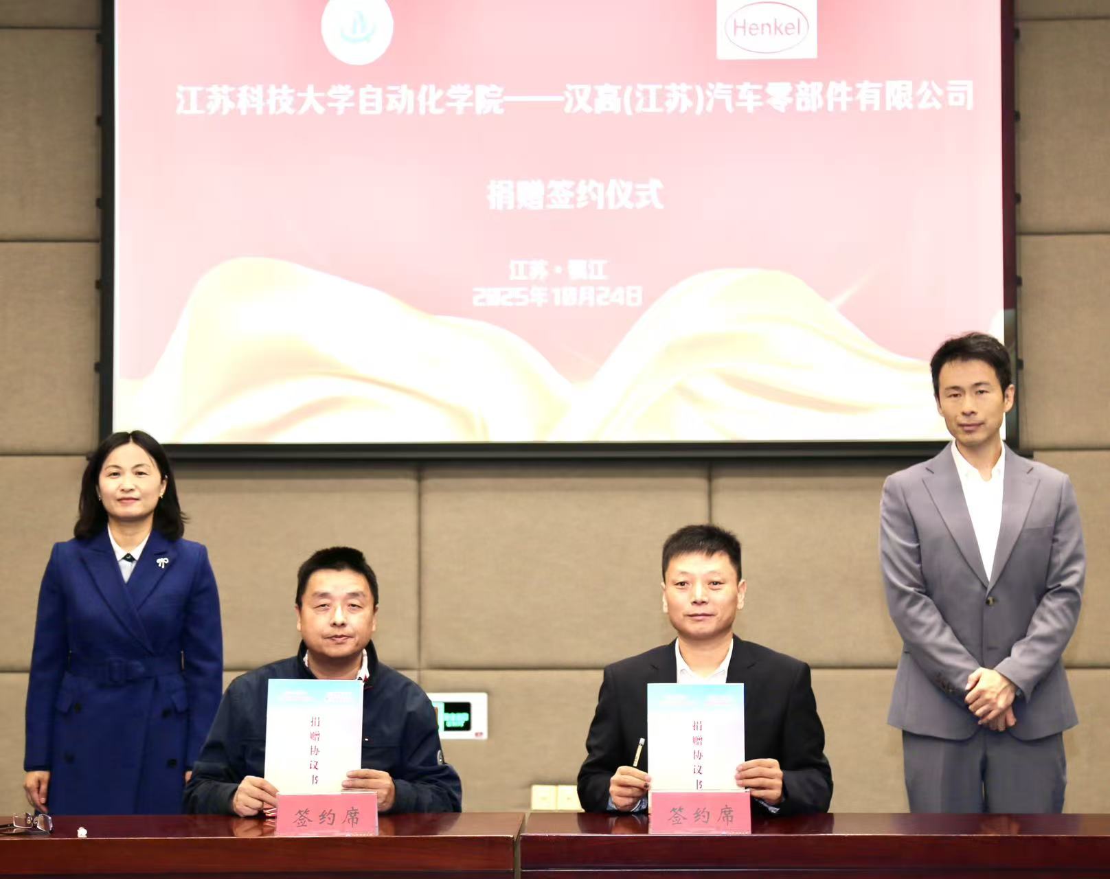 正值学校92周年校庆系列活动举办期间,为深化校企合作、赋能人才培养,汉高励志奖学金捐赠仪式在学校图书馆104会议室隆重举行。汉高粘合剂技术大中国区运营总监顾靓,汉高(江苏)汽车零部件有限公司总经理郑良、工会主席陈远,学校对外合作处处长、教育发展基金会秘书长王荣,自动化学院院长姜文刚、党委书记张霞、副院长陈迅,学生处学生管理科科长赵强,以及企业嘉宾、师生代表等出席仪式。仪式由张霞主持。