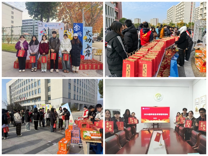 一份份精心准备的“暖心礼包”,承载着真挚的祝福与深切的期望。学校分别在西苑食堂正门和图书馆东南角广场设立“研”途加油站,发放“应援水果”柿子和橙子共3000余个,寓意学生考研心想“柿橙”;发放全套品牌考研文具3000余套,补给学生考研装备。各学院也巧妙构思,将美好寓意融入实用物资之中:粮食学院的“橙”功“巧”克力组合,海洋学院的考研“橙”“柿”,船海学院的复试宝典,人文学院的考研伴手礼,机械学院的“苹”安上岸、“柿”事如意礼遇,无不寄托着对学子马到成功的殷切祝愿。此外,环化学院的暖手宝、能量食品和外国语学院发放的蒸汽眼罩等实用物品,连同学弟学妹手写的祝福卡片,被一一送到学子手中,切实关照备考期间的细微需求,让温暖触手可及。