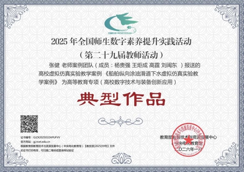 近日,在2025年教育部全国师生数字素养提升实践活动(第二十九届教师活动)高等教育专项评选中,我校船舶与海洋工程学院报送的2项高校虚拟仿真实验教学案例脱颖而出,均获评典型作品。