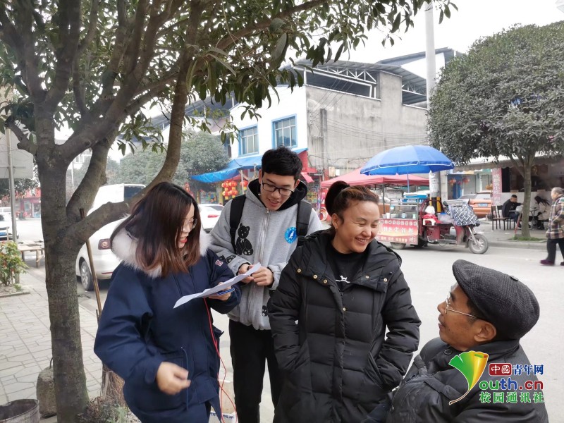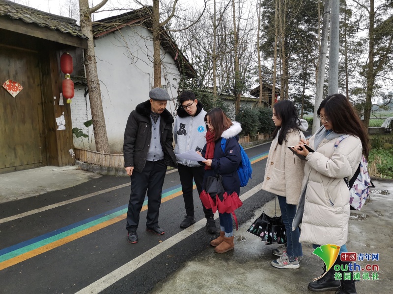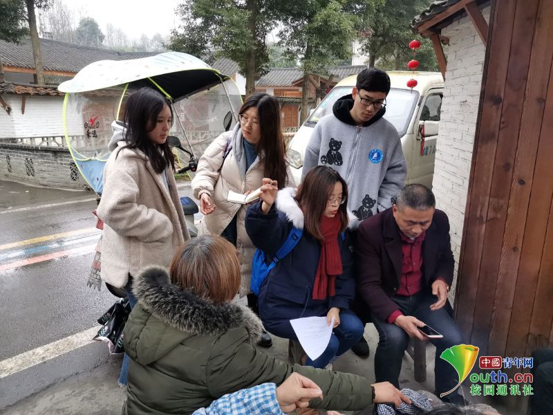 图为调研队员采访石羊镇风堆村村民中国青年网通讯员 康文慧供图