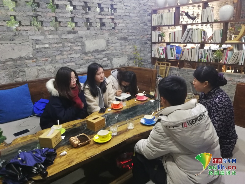 图为调研小队采访“猪圈咖啡”经理中国青年网通讯员 康文慧供图