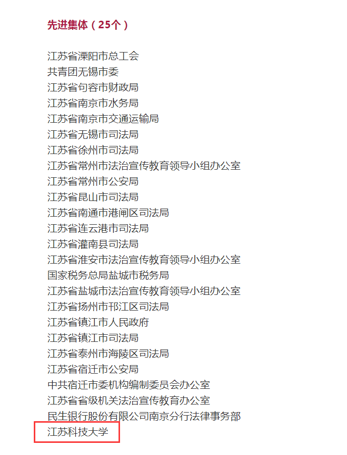 据悉,江苏省共有25个单位被评为先进集体,36人为先进个人。