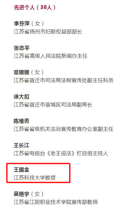日前,全国普法办印发决定,通报表扬 “七五“普法中期全国先进集体和先进个人,乐玩手机版荣获 “七五“普法中期全国先进集体,也是江苏省唯一获此殊荣的高校。同时,我校王国金教授荣获“七五“普法中期全国先进个人。