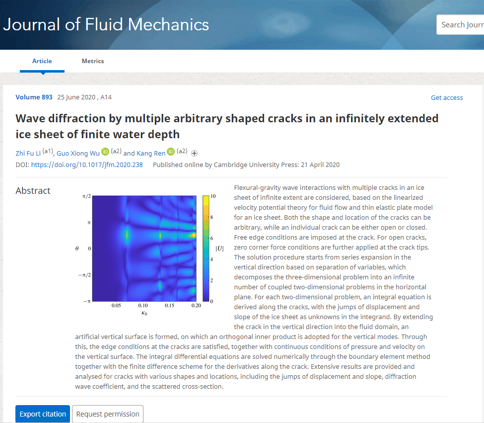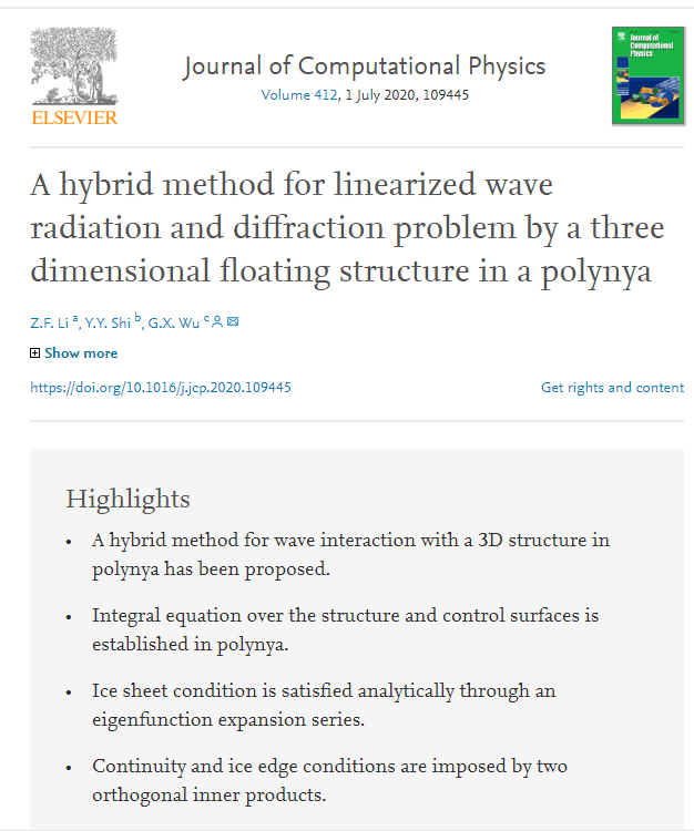 近日,流体力学领域顶级期刊《流体力学》(Journal of Fluid Mechanics)和计算流体力学领域著名期刊《计算物理》(Journal of Computational Physics)分别在线发表了乐玩手机版李志富副教授为第一作者的冰区水动力学研究成果。