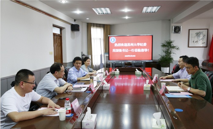 5月29日下午,苏州大学党委常委、纪委书记、派驻监察专员芮国强一行赴我校调研交流,我校党委常委、纪委书记、派驻监察专员郑培钢主持交流会。