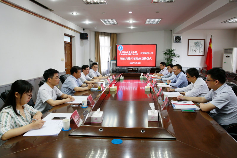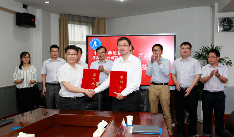 6月18日上午,我校与中国移动通信集团江苏有限公司镇江分公司在东校区综合楼六楼会议室举行校企共建5G实验室签约仪式。校长周南平、镇江移动公司刘磊健总经理等人出席了签约仪式。