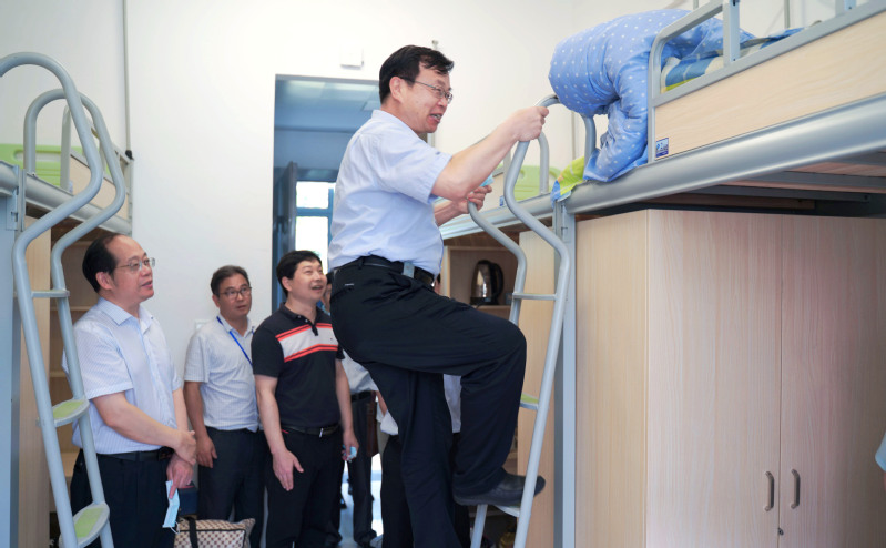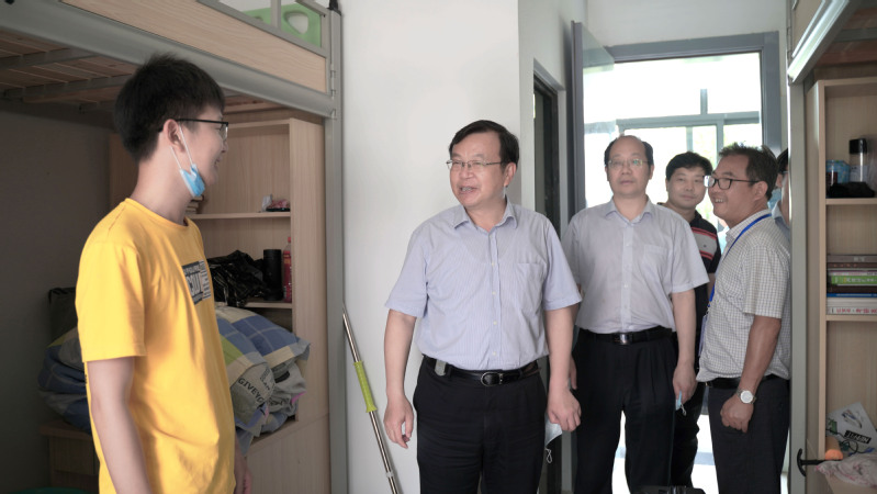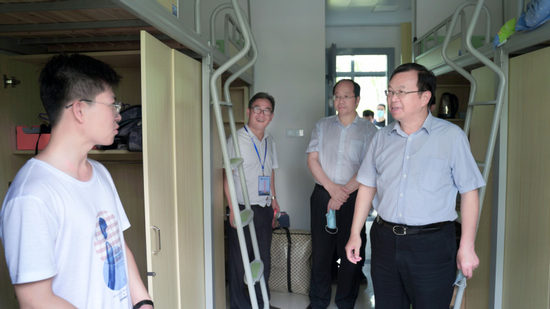 “同学们吃得好不好,住得怎么样,学习环境又如何?”搬迁到新校区后的学习生活,是学校最牵挂的事。7月4日,1000余名学生全部入住西南宿舍区53号宿舍,校长周南平、党委副书记许俊华、副校长谈镇来到新校区了解学生搬迁后的学习生活情况,把学生的学习生活始终挂在心上。