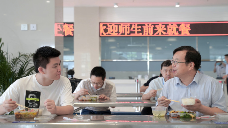 “新校区的条件有没有达到你的预期?还有什么需要改进的?”在西苑餐厅,校长周南平、党委副书记许俊华、副校长谈镇等与同学们一起就餐。材料学院高分子材料与工程专业的罗伟奇看到校长如此关心学生特别感动,校长告诉他,虽然新校区现在还没有完全建设好,后期还会不断完善,如果还有哪些做得不好,请同学们一定告诉学校,学校都会努力去完善。校长周南平还告诉罗伟奇,在西苑餐厅二楼有一个主题餐厅,到7月底就可以完工,这是一个以船舶为特色的主题餐厅,集学习、就餐、休闲为一体,同学们用完餐还可以自习。听完校长的话,罗伟奇很期待,他告诉记者,在这样的环境下学习,可以激发同学们学习的兴趣,效果一定很好。