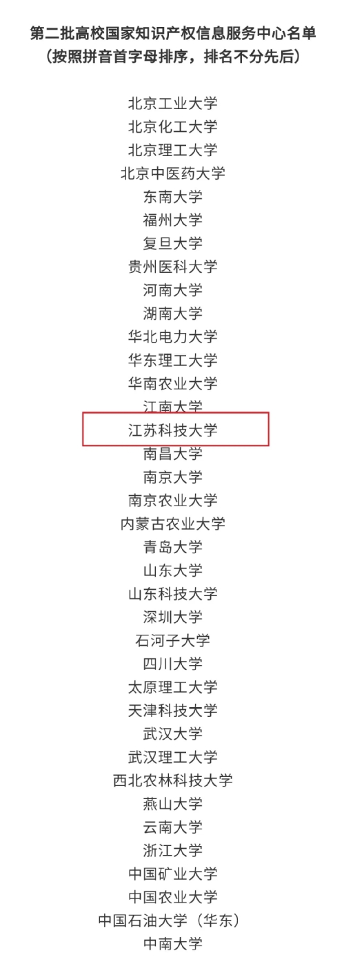 7月10日,国家知识产权局、教育部联合公布第二批高校国家知识产权信息服务中心名单,乐玩手机版成功获批高校国家知识产权信息服务中心,是此次江苏省入选的唯一省属高校。