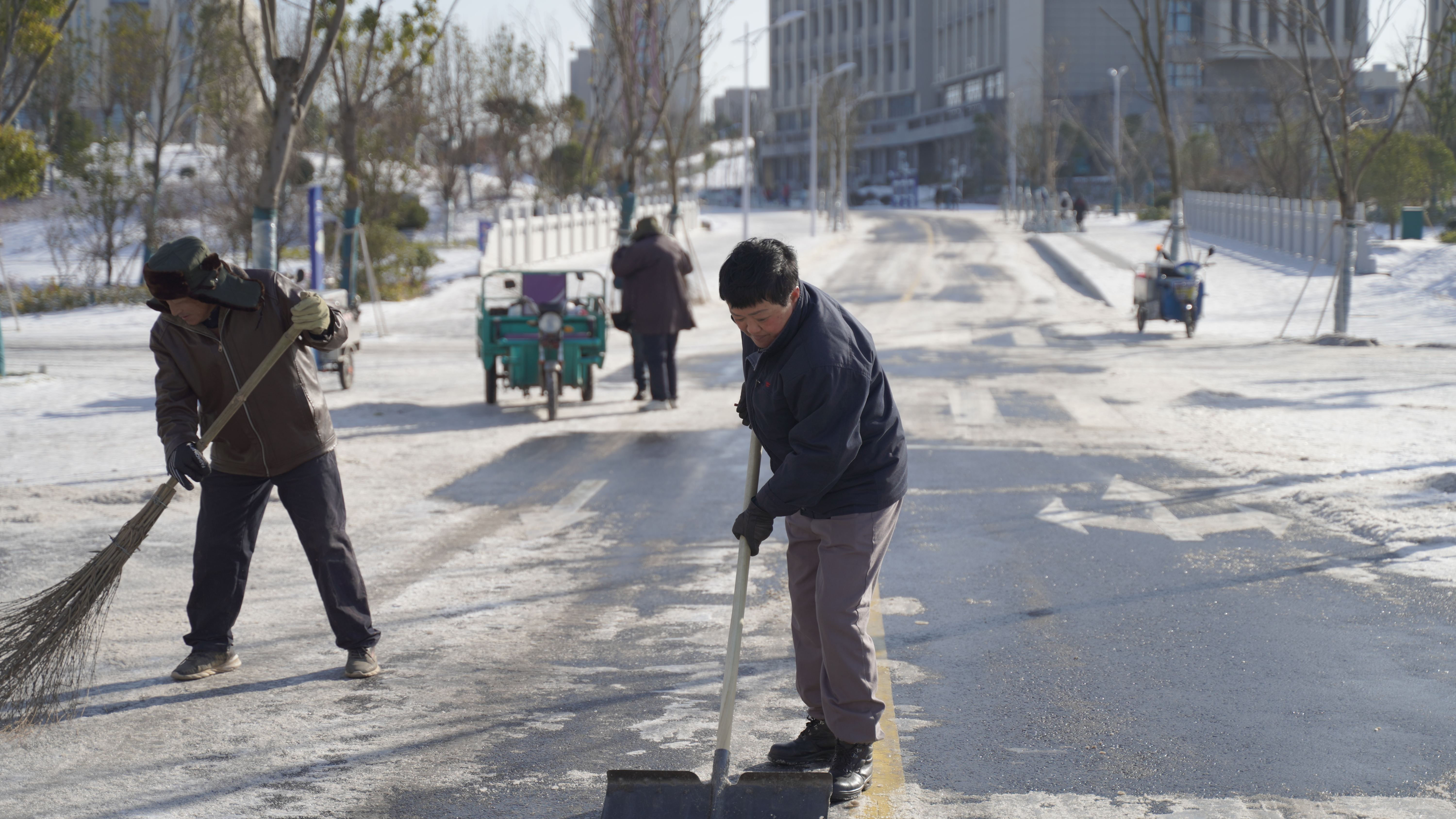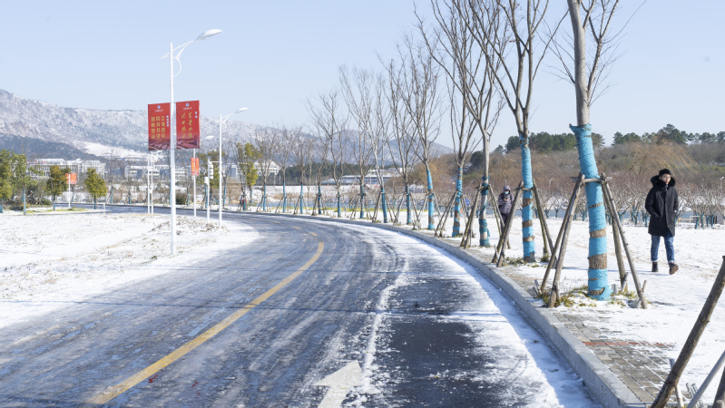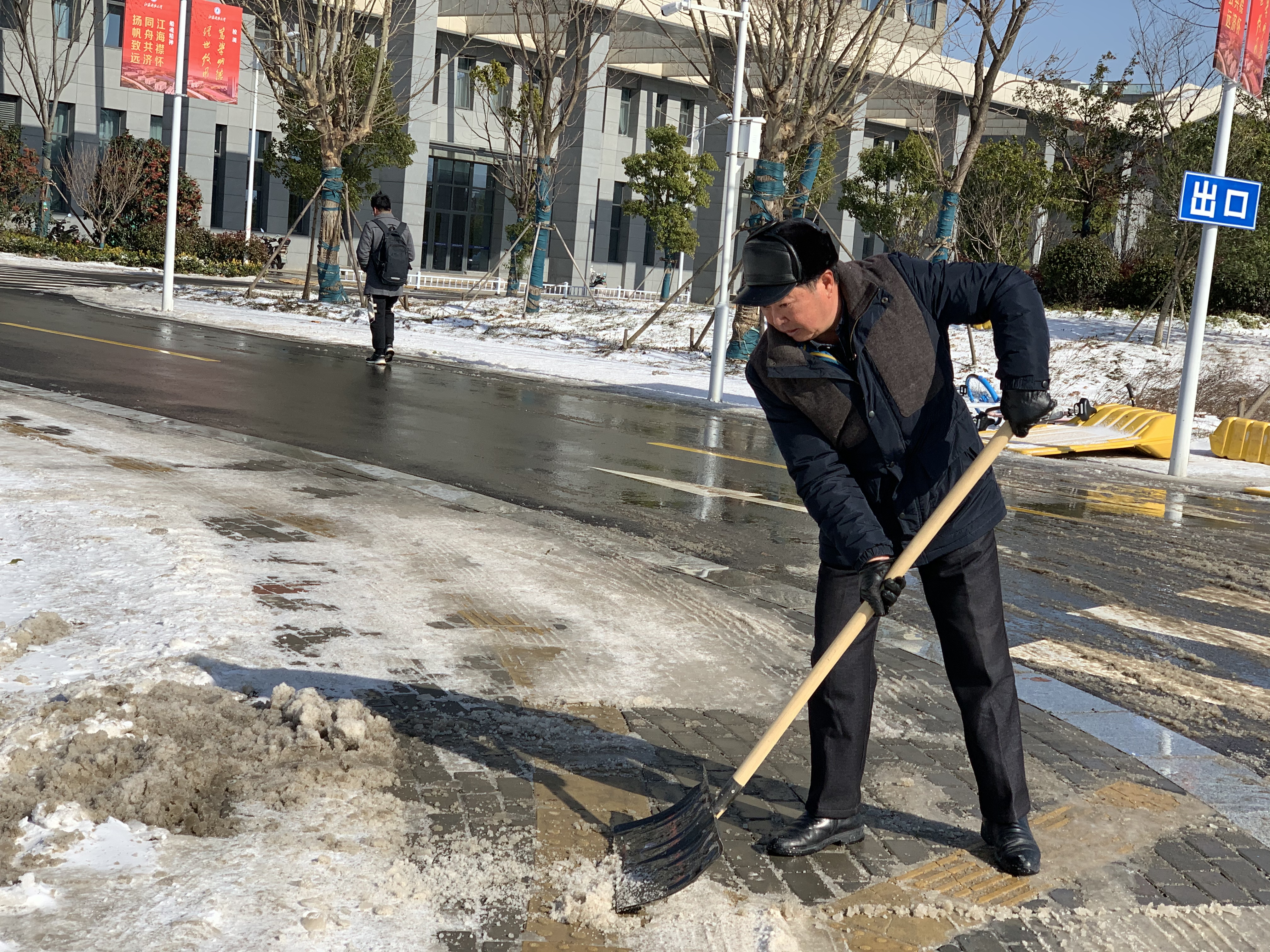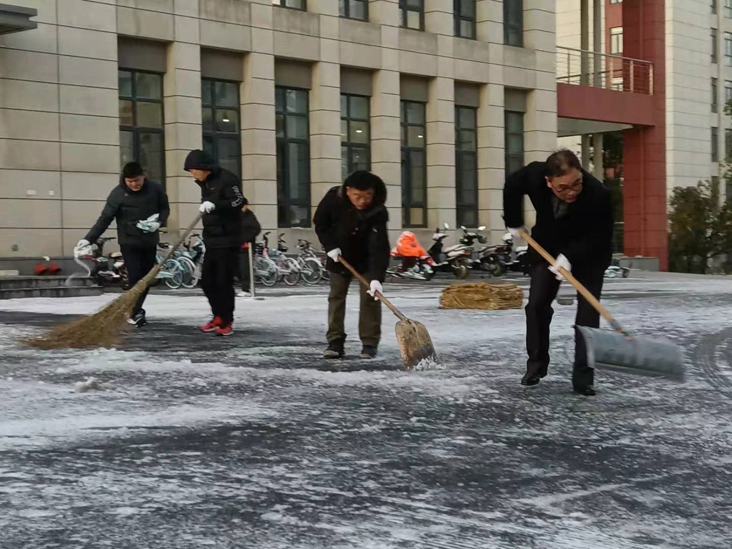 12月30日凌晨6:00,一阵阵扫帚划过地面的声音伴随着铁铲摩擦声打破了校园的宁静。受强冷空气影响,寒潮突袭镇江,纷飞的大雪、刺骨的寒风相约而至,美丽的长山校区白雪皑皑、银装素裹。美丽的雪景令人神往,但却给广大师生出行带来了很大的安全隐患,为了保障校园安全稳定运行,后勤集团工作人员大清早赶到学校清理积雪,为师生打通了安全上课、安心上班的交通线。
