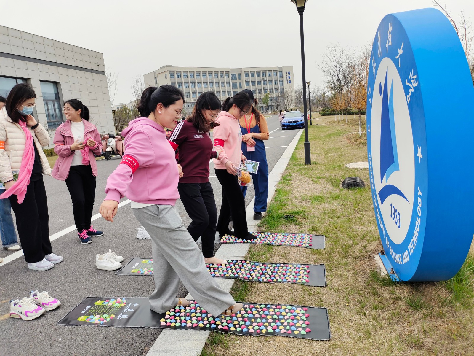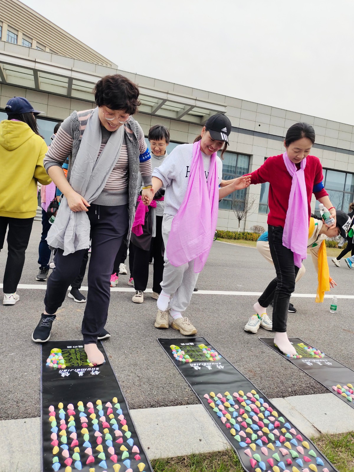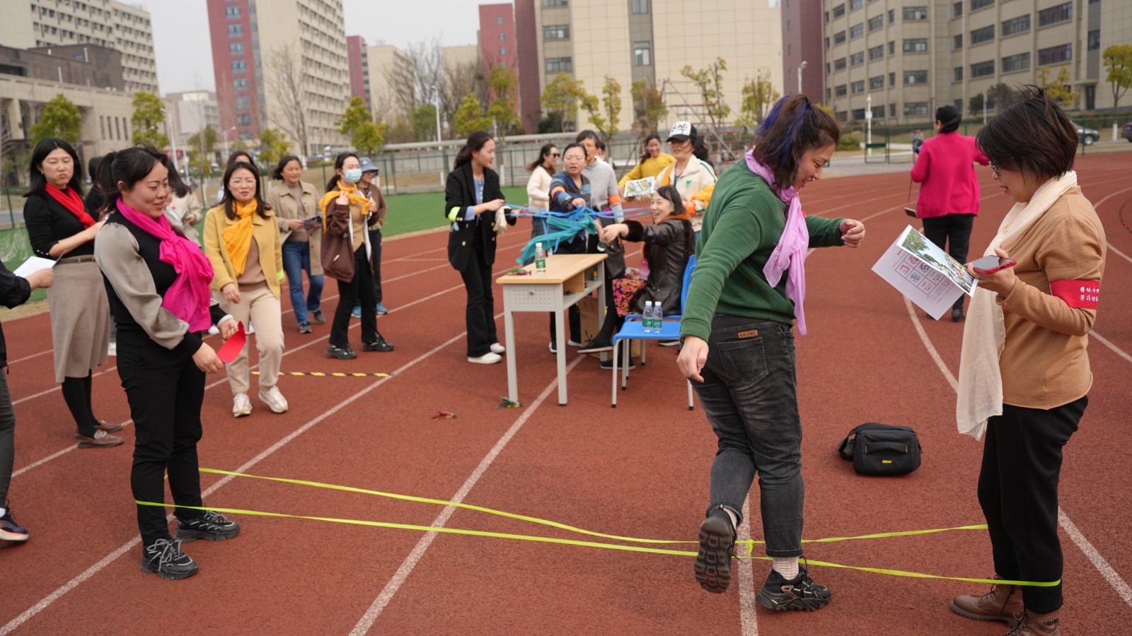 “丝韵流芳”要求3名队员各选一条丝巾,完成不同的系法并合影;“同舟共济”需要队员穿同舟共济木板鞋,走完规定路线;“砥砺前行”环节队员手牵手,不穿鞋从趾压板上共同走过,手均触到校标;“巾帼射手”“飞盘丽影”“重回童梦”……九个关卡九重考验,比的是智慧,赛的是体能,竞的是合作。活动现场高潮迭起,气氛热烈而紧张,场内的欢呼声、欢笑声、鼓掌声、喝彩声不断,大家沉浸在节日的快乐氛围中,收获满满,幸福满满。