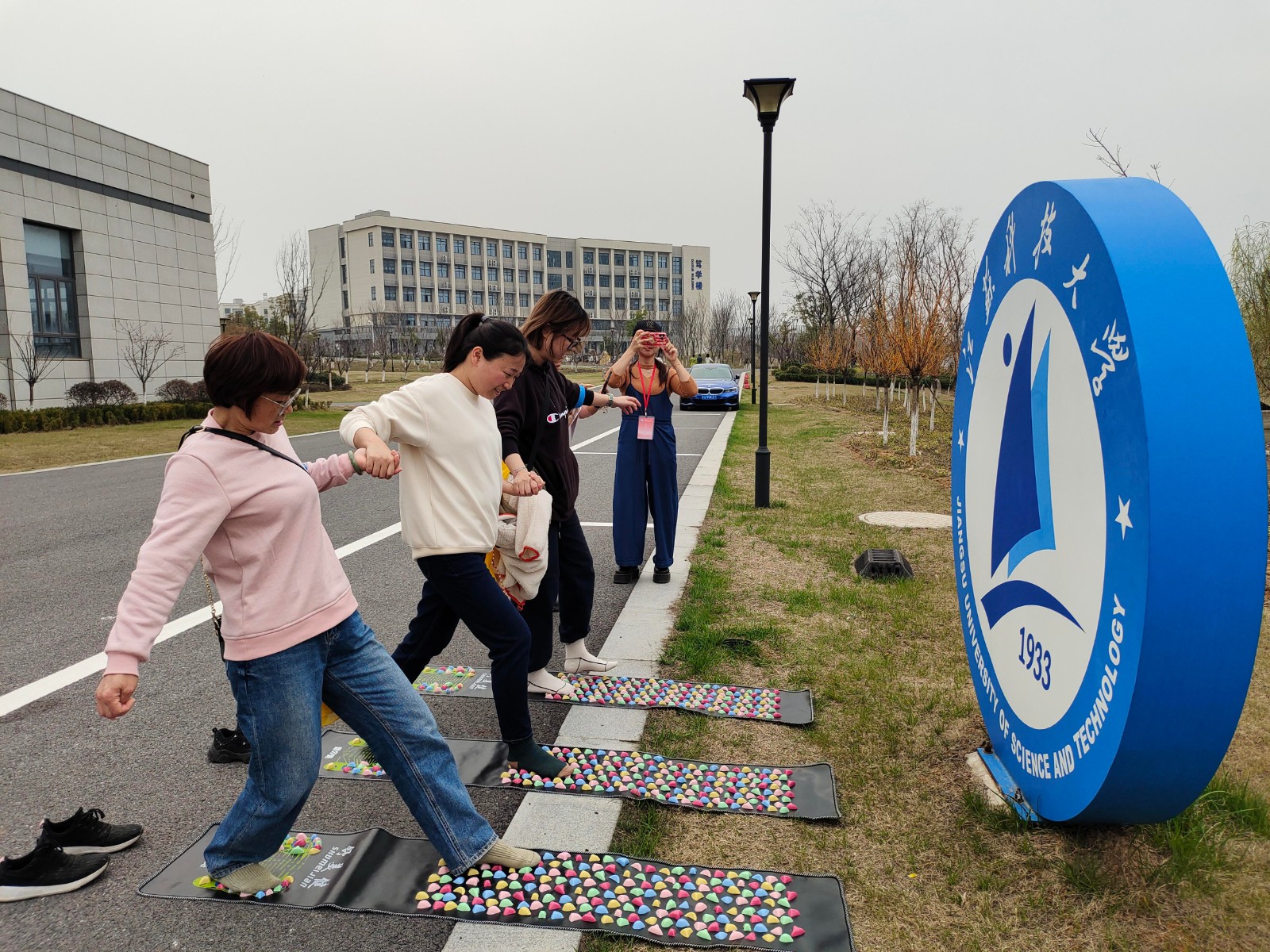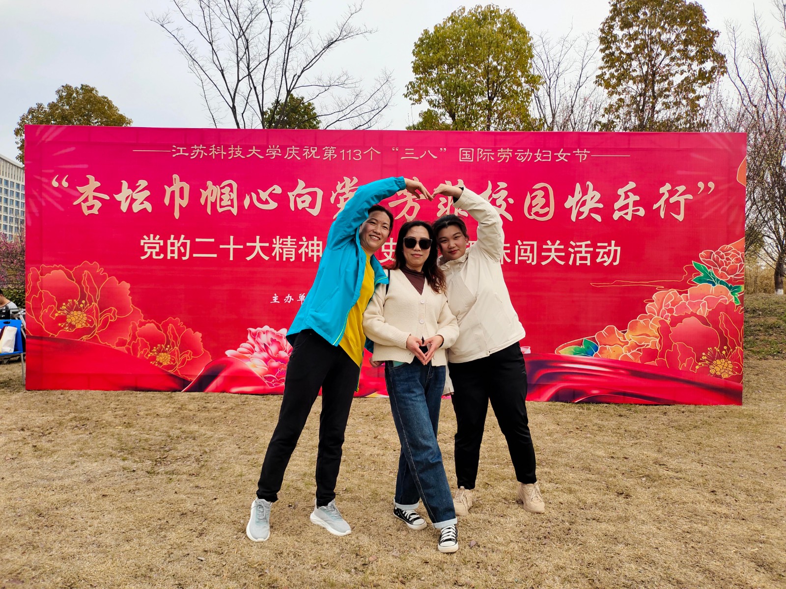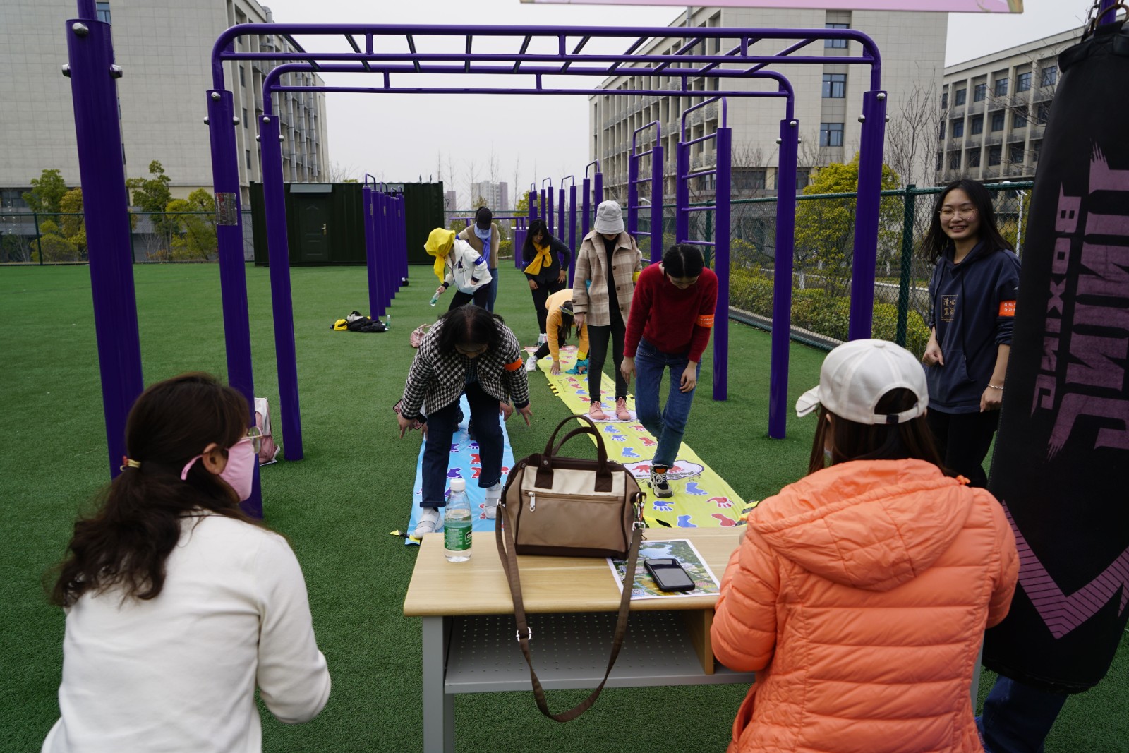 “丝韵流芳”要求3名队员各选一条丝巾,完成不同的系法并合影;“同舟共济”需要队员穿同舟共济木板鞋,走完规定路线;“砥砺前行”环节队员手牵手,不穿鞋从趾压板上共同走过,手均触到校标;“巾帼射手”“飞盘丽影”“重回童梦”……九个关卡九重考验,比的是智慧,赛的是体能,竞的是合作。活动现场高潮迭起,气氛热烈而紧张,场内的欢呼声、欢笑声、鼓掌声、喝彩声不断,大家沉浸在节日的快乐氛围中,收获满满,幸福满满。