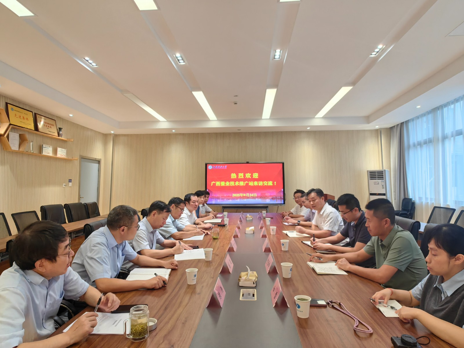 9月24日下午,广西蚕业技术推广站党委书记、站长卿军一行来校考察交流,校党委常委、副校长李木旺出席座谈会。座谈会由生物技术学院、蚕业研究所党委书记钱平主持。