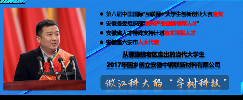 【人物简介】吕林,安徽省委组织部新兴产业创新领军人才,安徽省高层次人才;从鄂豫皖老区走出的当代大学生,获第八届中国国际”互联网+”大学生创新创业大赛金奖,回乡创立安徽中钢联新材料有限公司,乐玩手机版2014届材料学院校友。